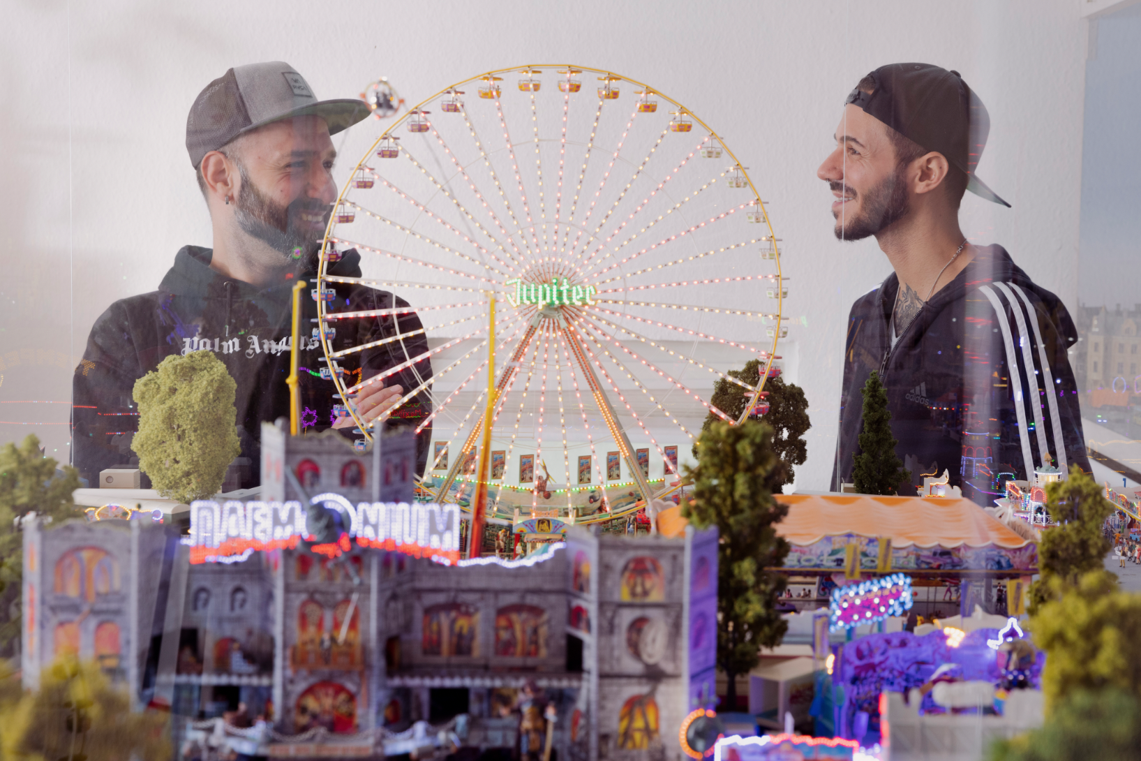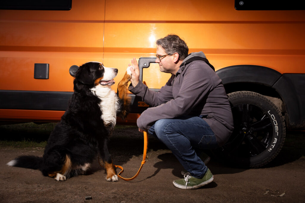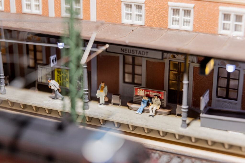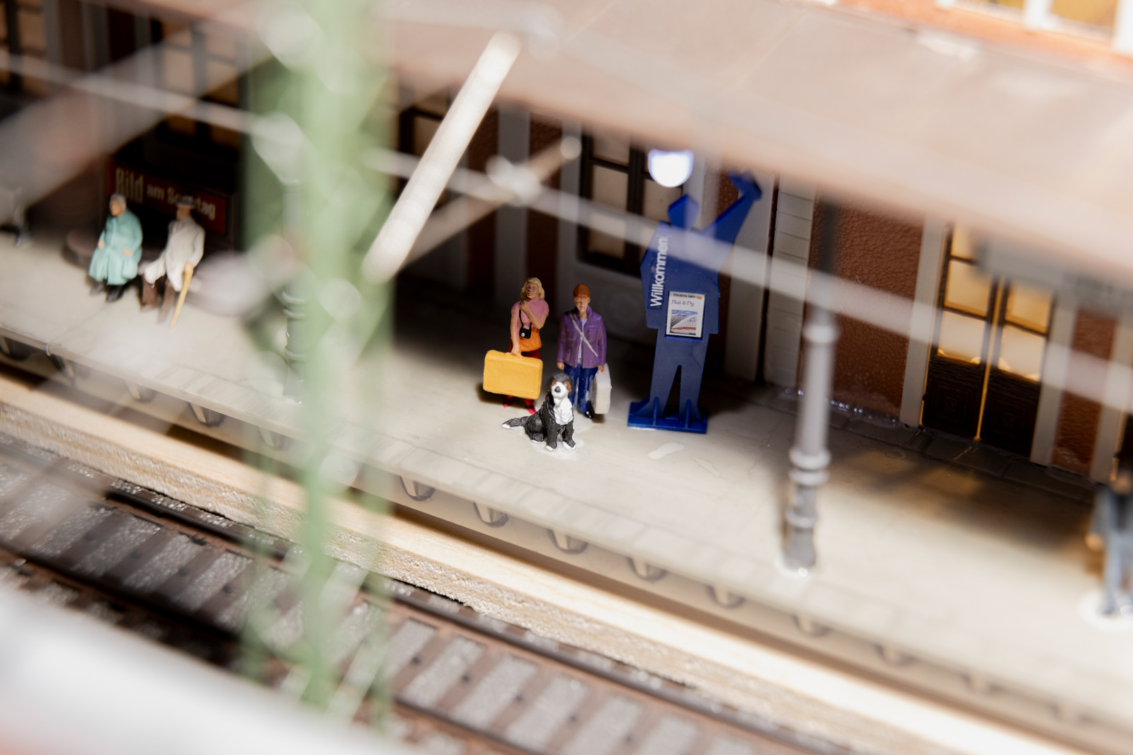 Seinem Sennenhund hat er auf dem Bahnsteig sogar ein Miniaturdenkmal gesetzt. Er gedenkt auch, sich und seine Frau im Schrumpfgröße zu verewigen. Daher besteht auch der Kontakt zu den „Billardbahnern“ Peter und Andreas Schulz sowie Dirk Lütke Harmann, die wir in dieser Reihe bereits vorgestellt haben.1 Ein Camper in knalligem Orange steht als Fahrzeug für ein  geplantes Sabbatical bereit. Große Pläne im echten Leben wie auch im Miniaturformat.