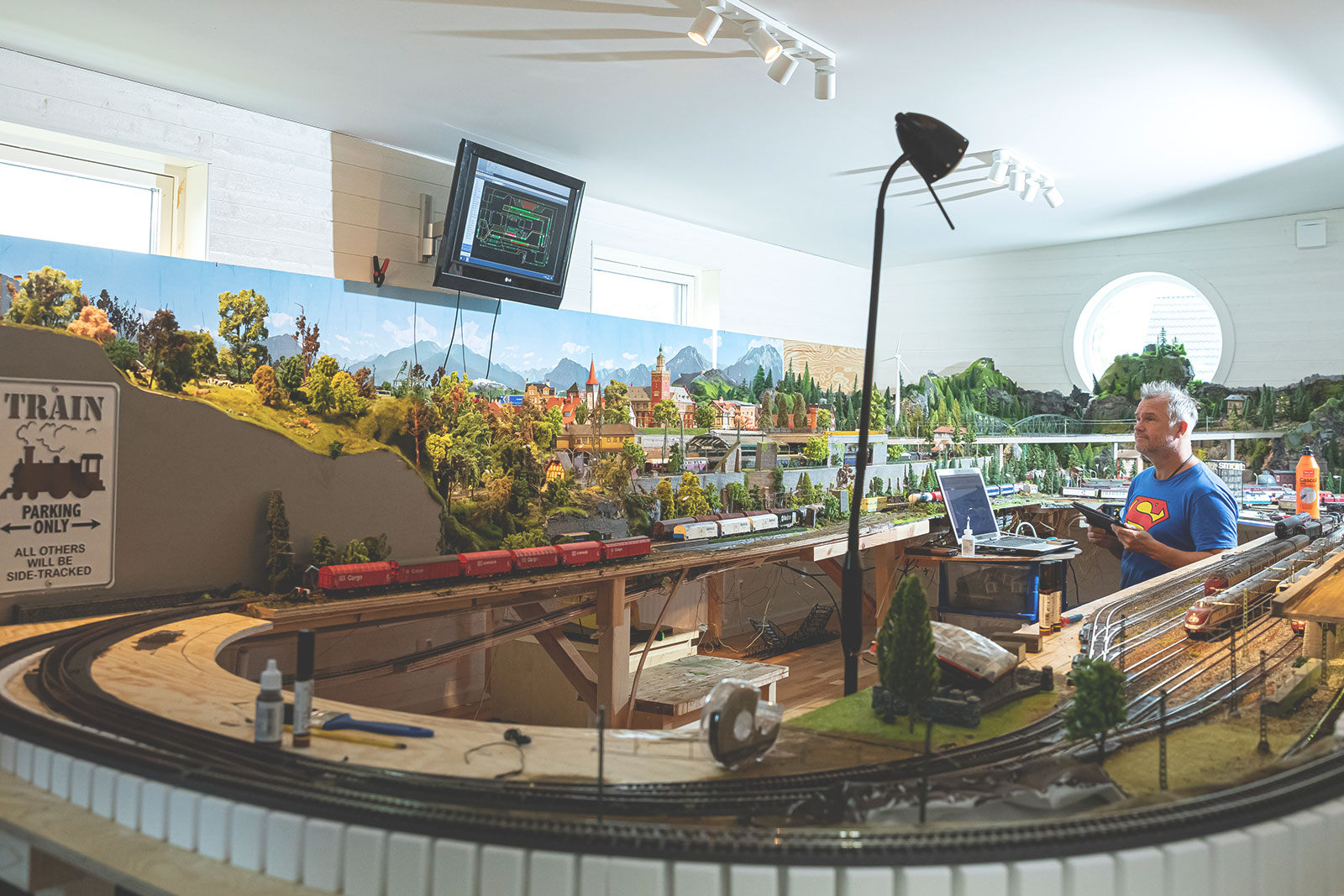 Heute besitzt Danne eine große Anlage mit Teilen von Trix, Roco und NOCH, die ganze 28 Quadratmeter misst und über eine komplett digitale Steuerung verfügt. Sein Stil: deutsch, bayerisch, österreichisch, schweizerisch, also traditionell alpenländisch mit grünen Bergen und Wäldern im typischen NOCH- und Faller-Stil und das in den Epochen III–V.