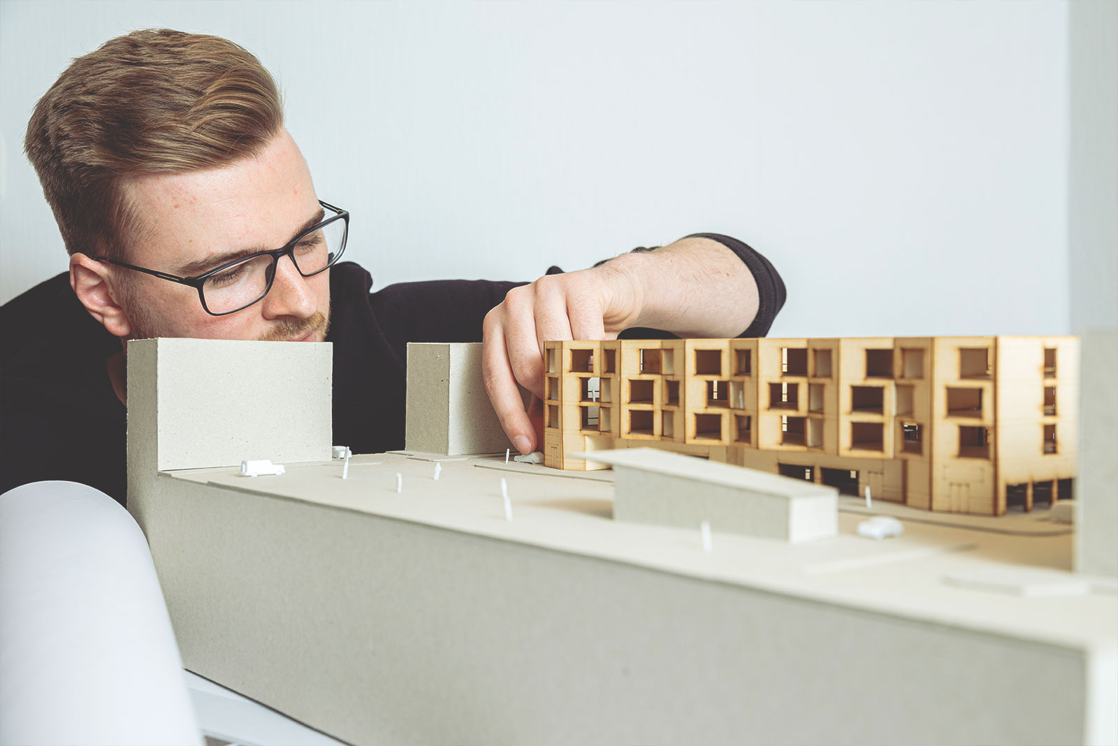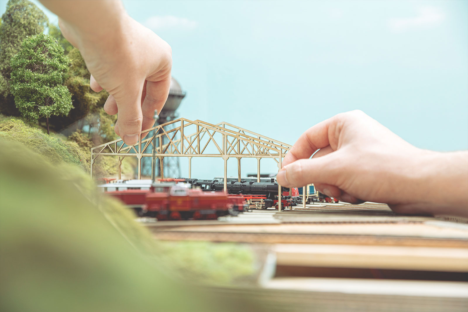 Florians Traum ist es, seine Leidenschaft beruflich auszuleben, sprich Modellbahnen im Auftrag zu bauen. Deswegen auch die hohen Ansprüche an das aktuelle Projekt: Es soll eine Bewerbung werden. Hier zeigen sich seine Standards, sein Stil und seine Fähigkeiten. Florian sieht sich als Allrounder, hat aber doch ein Spezialgebiet: Dank seines Architekturstudiums besitzt er ein gutes Auge für Gebäude und Stadtinstallationen. Mit seinem Laser und seinen CAD-Zeichnungen verfügt er darüber hinaus über professionelle Planungstools. Wie man es auch dreht und wendet, Florian wird einmal beruflich im Maßstab 1:1 bauen oder wird aber auf der Bahnplatte Architekt.