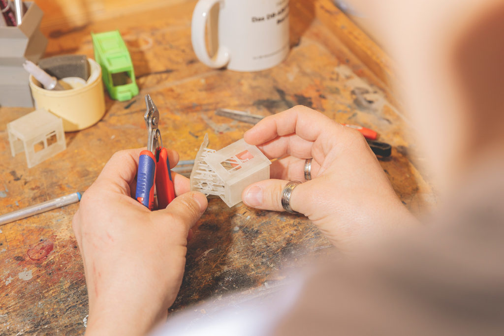 Mithilfe von 3D-Drucken und anderen Techniken entstanden neue Gebäude, andere stellte Guido mit dem sogenannten Kitbashing her, bei dem fertige Modelle auseinander- und neu zusammengebaut werden.