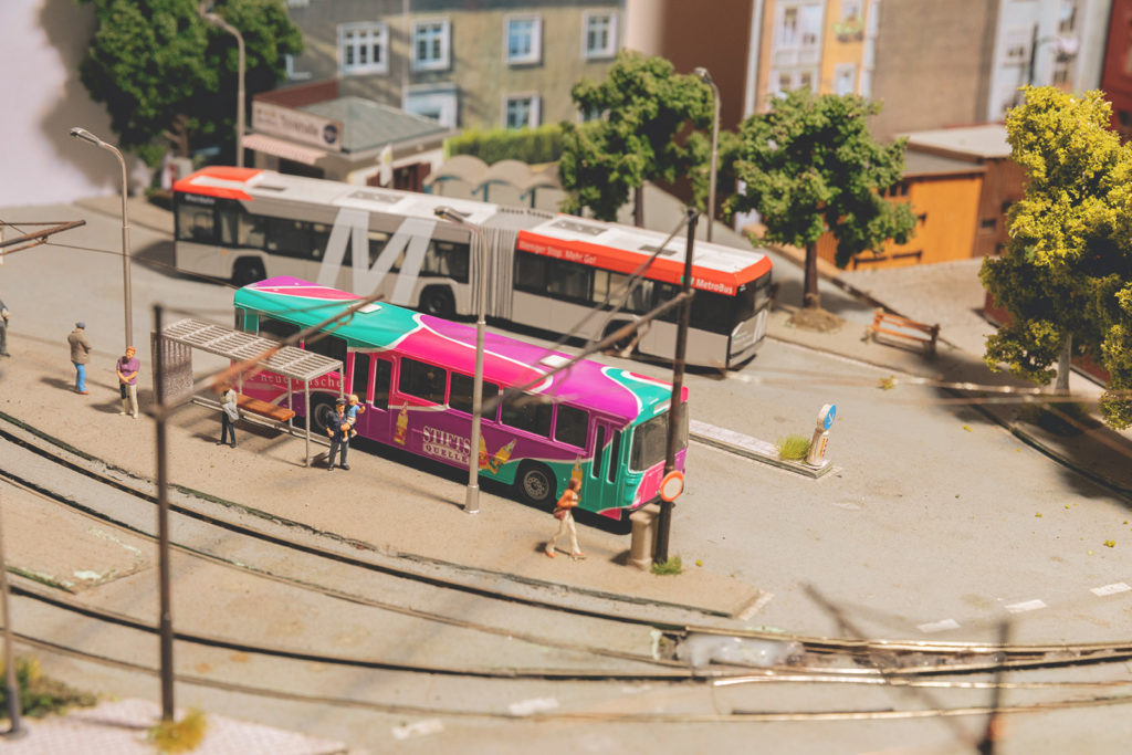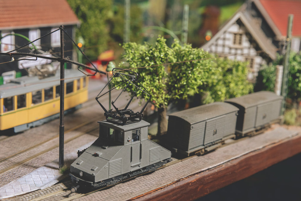Guidos Domäne sind ohne Zweifel die Straßenbahnen. Mit 3D-Konstruktion hat er in den letzten 10 Jahren bereits 300 Modelle entworfen, zuvor aus Kunststoff oder geätzte Messingmodelle. Er wollte das Thema in die eigene Hand nehmen, um auf seiner Anlage die passenden Fahrzeuge einsetzen zu können. Straßenbahnen sind eine kleine Nische im Modellbahnbereich und sehen regional auch sehr unterschiedlich aus. Deshalb gibt es kaum Modelle von Herstellern, die ohne Weiteres einsetzbar sind. Was es nicht zu kaufen gibt, muss eben selbst gebaut werden. So blieb ihm nichts anderes übrig, als die Straßenbahnen selbst zu konstruieren. Neben diesen sind mittlerweile auch Häuser, Straßenmöbel und weiteres Zubehör entstanden.