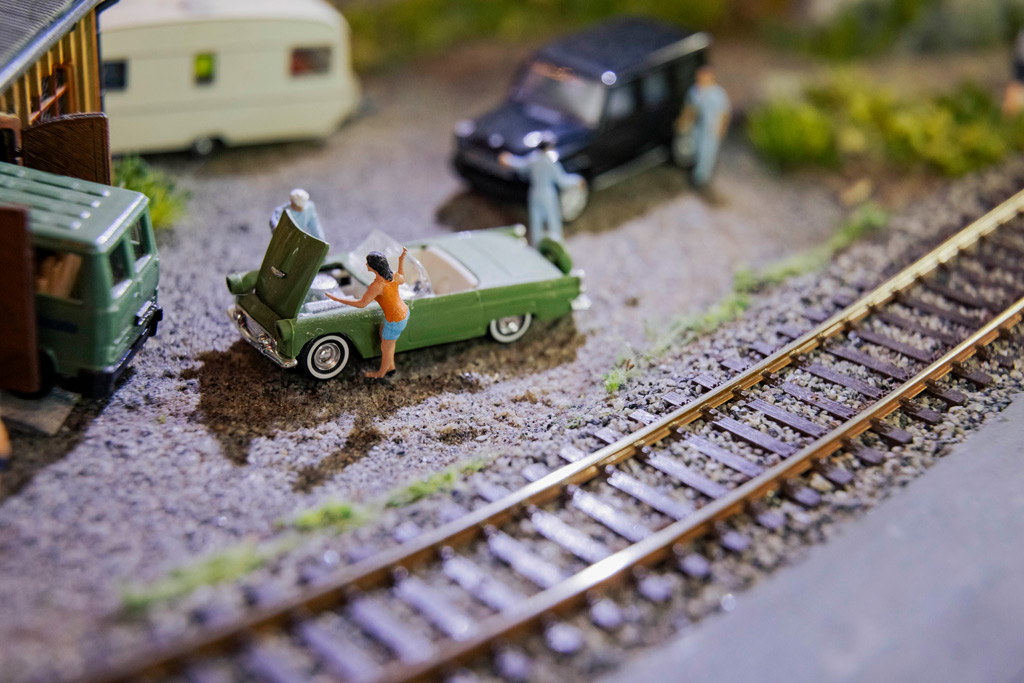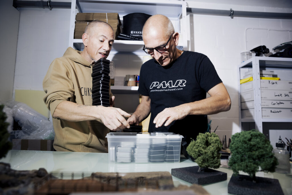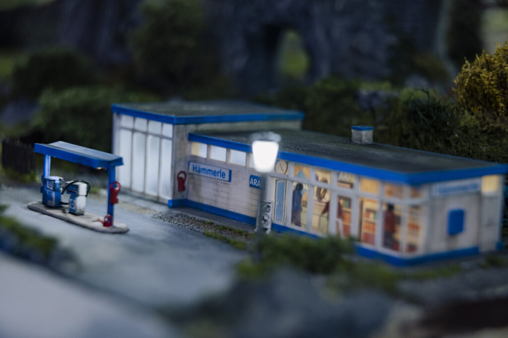 Für das Modellieren und Bemalen der Landschaft ist der studierte Airbrush-Künstler Andi zuständig. Bei dieser Gelegenheit entdeckt er den Dioramenbau für sich. Die technische Seite übernimmt Peter inklusive IT- und Strom-Infrastruktur. Die Anlage wird digitalisiert, d. h. die Steuerung der Bahnen erfolgt komplett über ein Tablet. So fällt Peters Fazit kurz und nüchtern aus: „Das hat mit Weihnachten 1979 nichts mehr zu tun.“