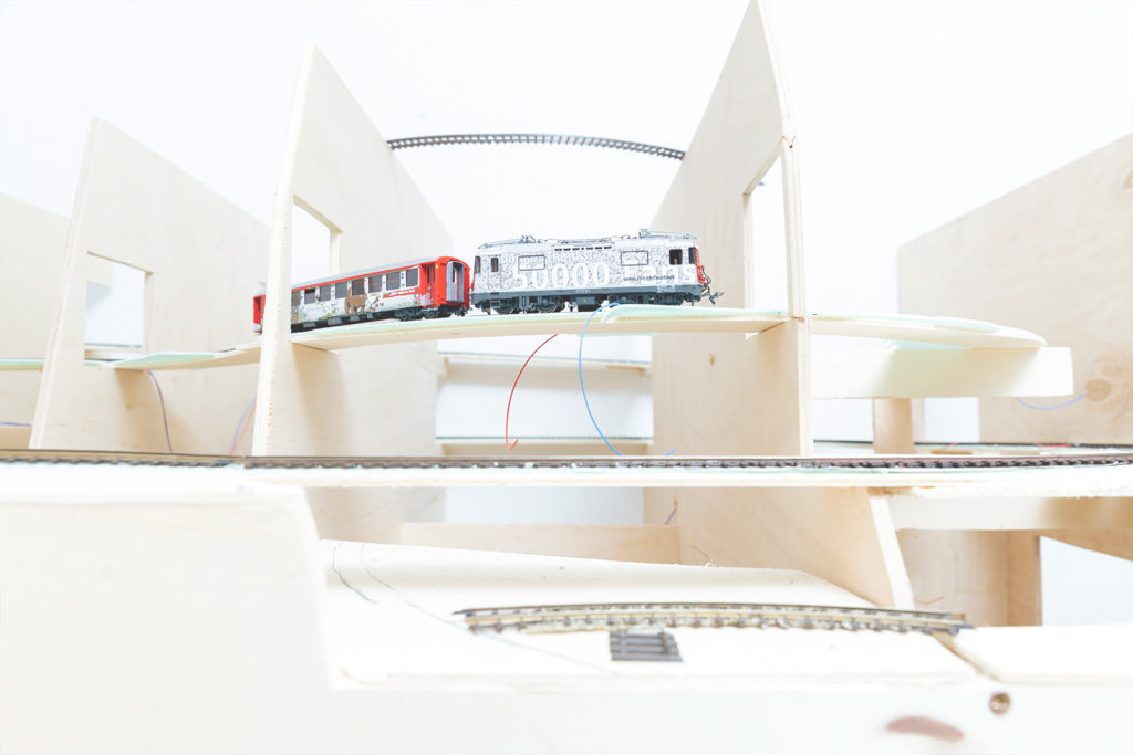Im Keller befindet sich darüber hinaus ein Raum mit 12 m², in dem Tobias ein Stück der Rhätischen Bahn in der Schweiz nachbaut. Das Ziel ist eine Anlage in Anlehnung an die Strecke, die durch die Rheinschlucht zwischen Trin und Ilanz führt.